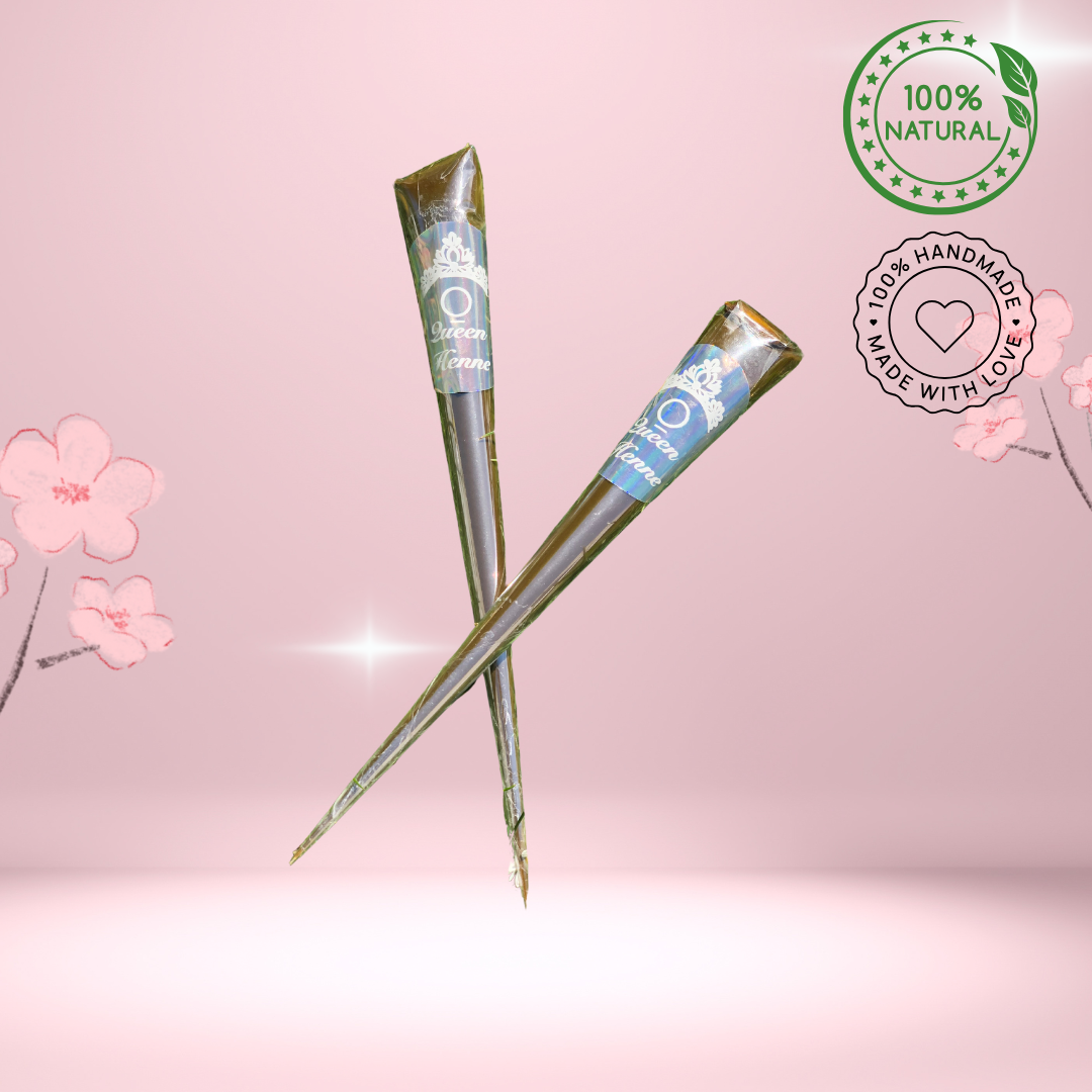 Les cônes QUEEN HENNA sont fraîchement préparés à la commande. Les cônes sont 100% naturels, sûrs et sans produits chimiques. Frais à base d'huile de lavande pure.Tache riche, brun fonce et intense dans les 36/48 heures.