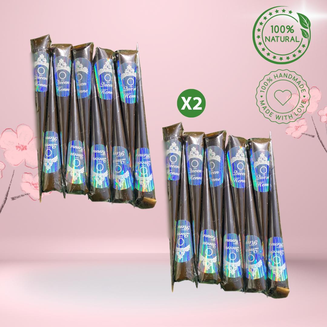 Les cônes QUEEN HENNA sont fraîchement préparés à la commande. Les cônes sont 100% naturels, sûrs et sans produits chimiques. Frais à base d'huile de lavande pure.Tache riche, brun fonce et intense dans les 36/48 heures.
